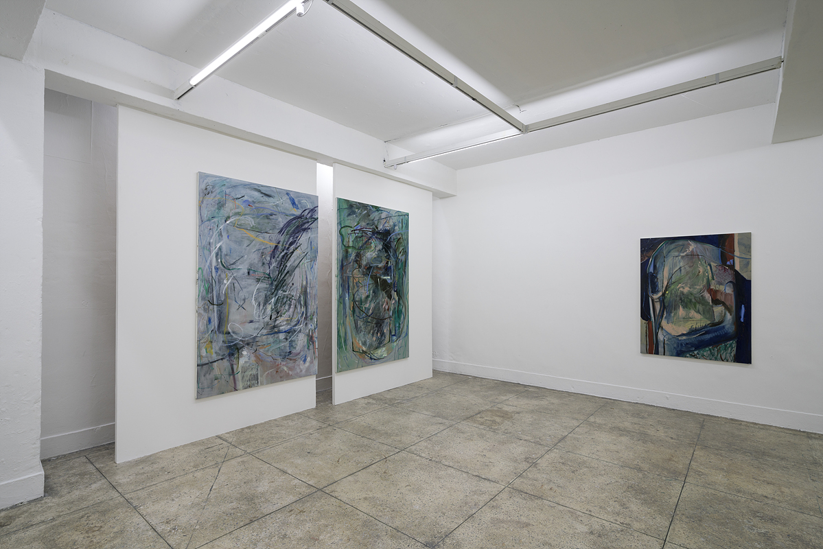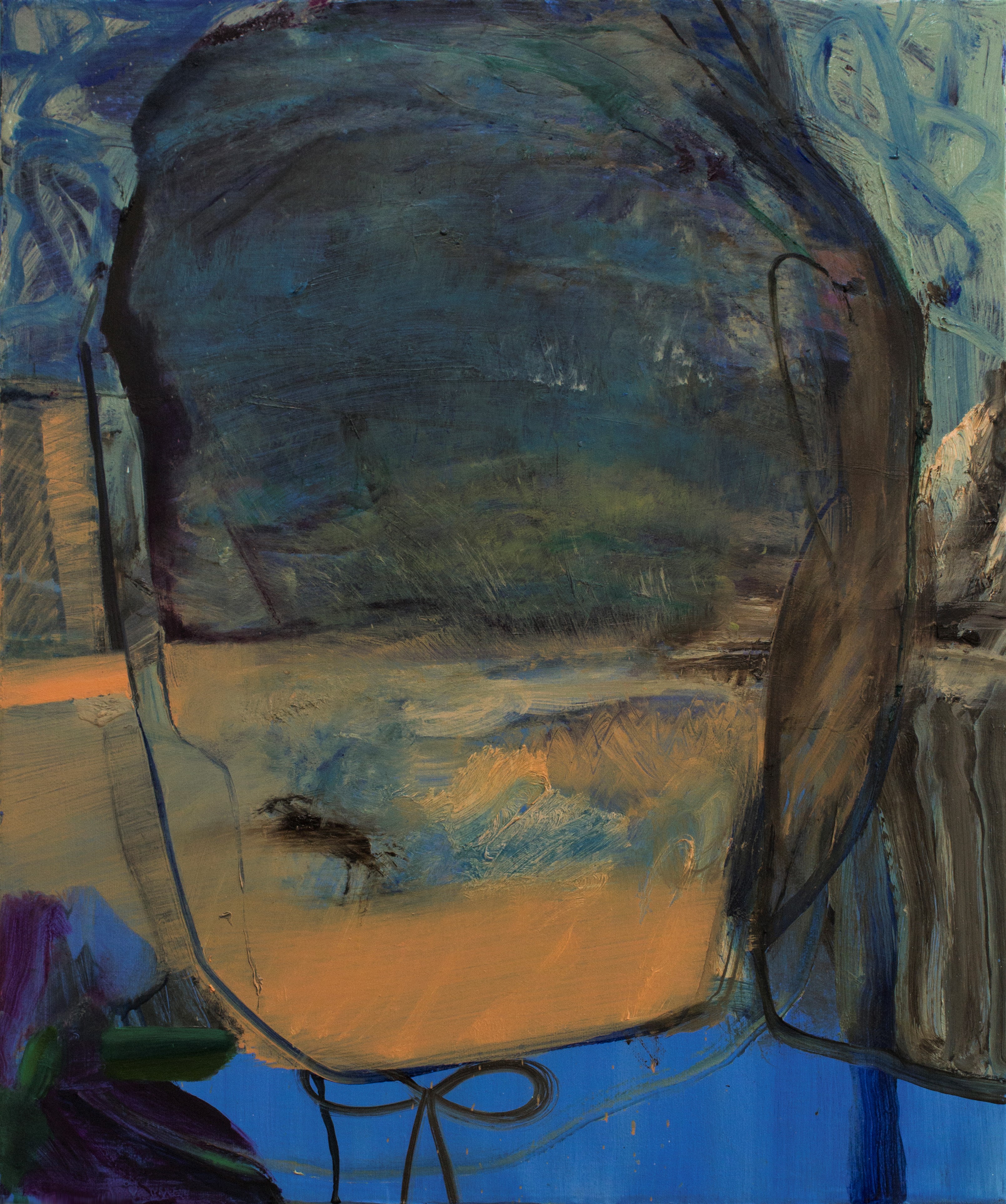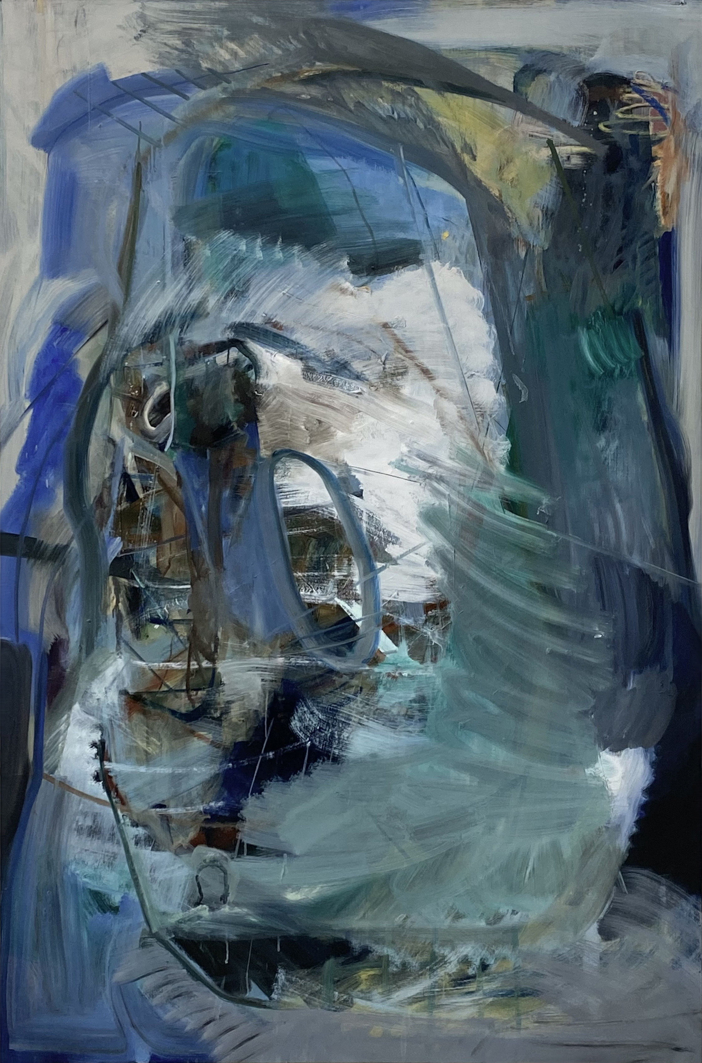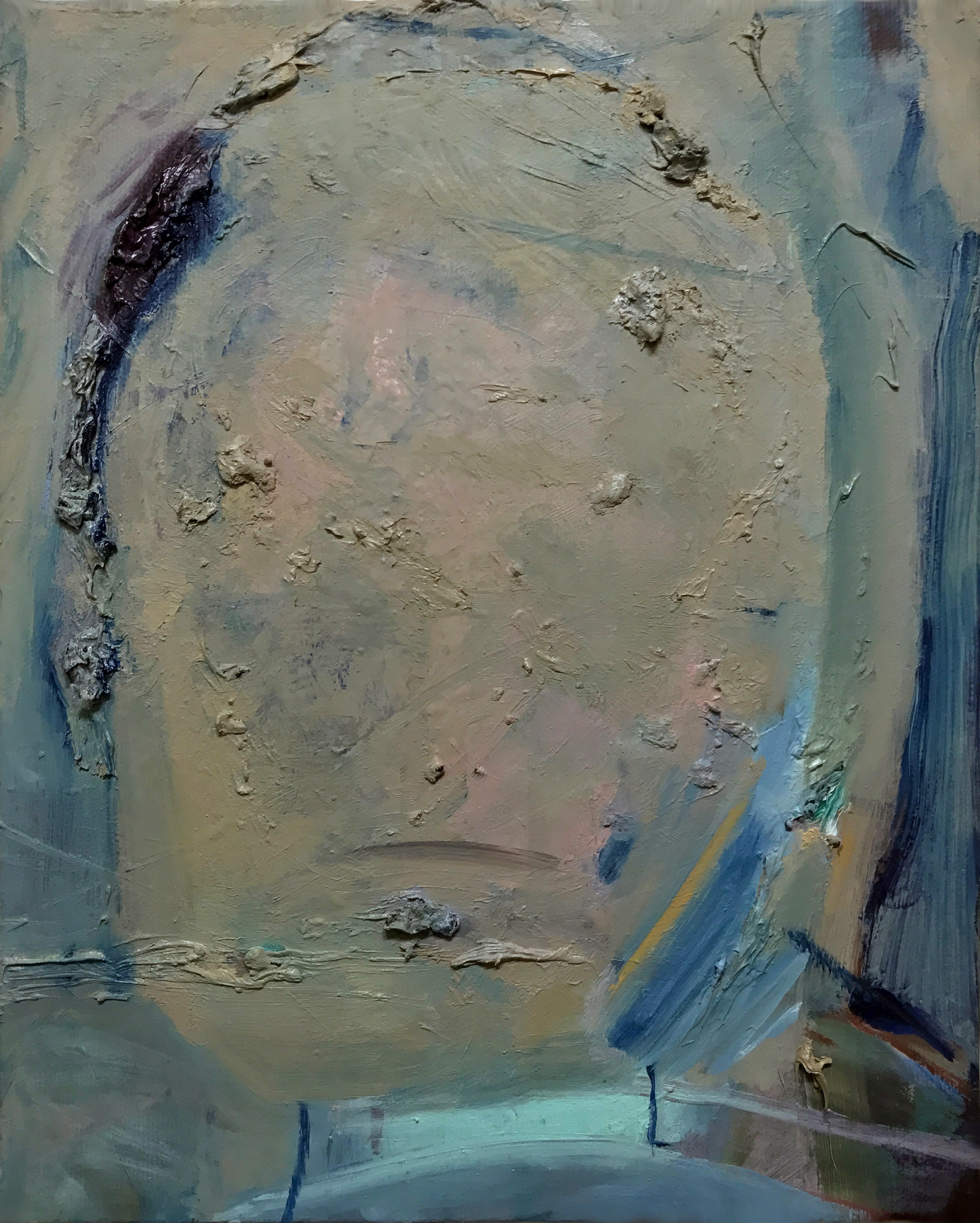 나는 '도시'란 단어를 보면 하나로 떠오르는 그림이 없다. 대신 청각, 촉각 혹은 어떤 상태가 연상되는데 예를 들면 공사장이라는 장소가 가진 임시적 상황, 지하철역 통로에서 사람과 사람이 부딪힐 때 쾅! 하고 둘 사이의 공간에 균열이 가는 소리-이미지, 러닝머신 벨트의 무한반복, 강물의 비릿한 악취 등 출렁이듯 흘러가고 대기 중에 떠다니는 상태가 연상된다. 다시 말해, 내가 사는 공간에 대한 위치와 정의는 고정된 것이 아니라 계속 변화하는 비정형의 어떤 것이다. 이번 전시 『블루 바이널 커튼』에 출품한 「얼굴 – 풍경」연작(2019)은 「Trick Mirror」(2009)의 연장선에 있다. 그러나 최근 작업에서는 이전보다 더 유동적이고 가변적인 요소에 집중했으며, 공기의 떨림이나 미세한 소음 등 순간적인 감각에 의존하며 작업했다. 또한, 예전 작업에서 보이는 얼굴 형태를 인지할 수 있는 선이나 묘사 등을 제거하려 했는데, 얼굴의 직접적인 묘사나 정보를 제시하기 보다는 오늘 날을 사는 사람들이 느끼는 미묘한 불안을 여러 겹 찍어내듯 보여주려 했다.