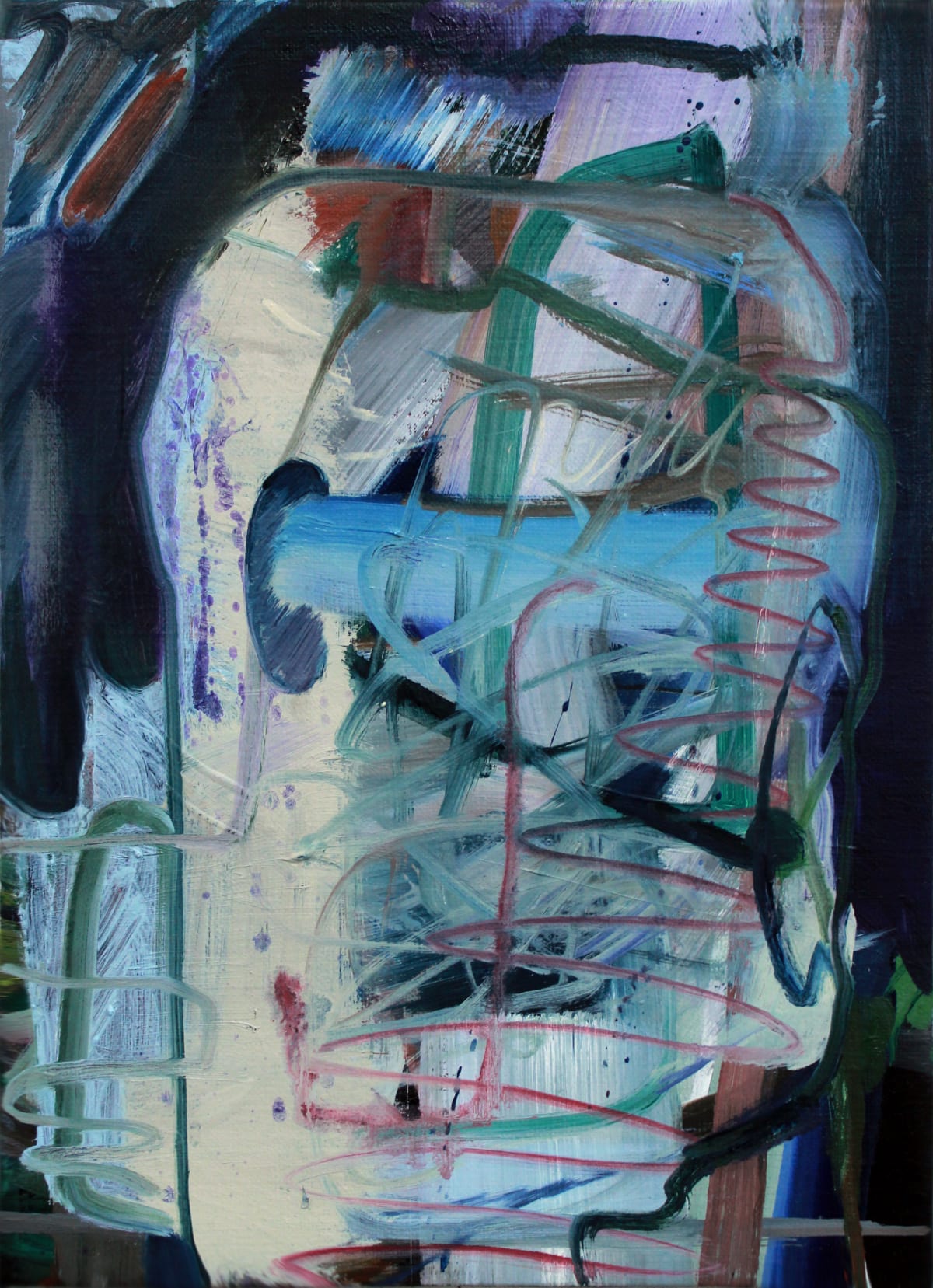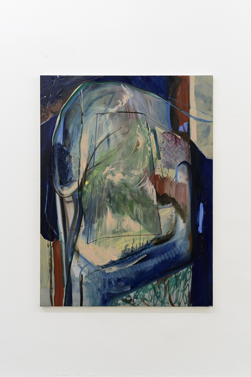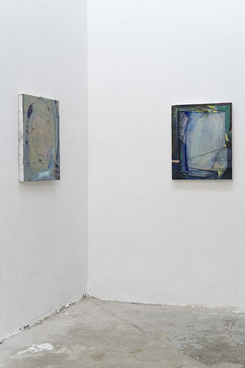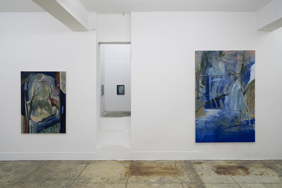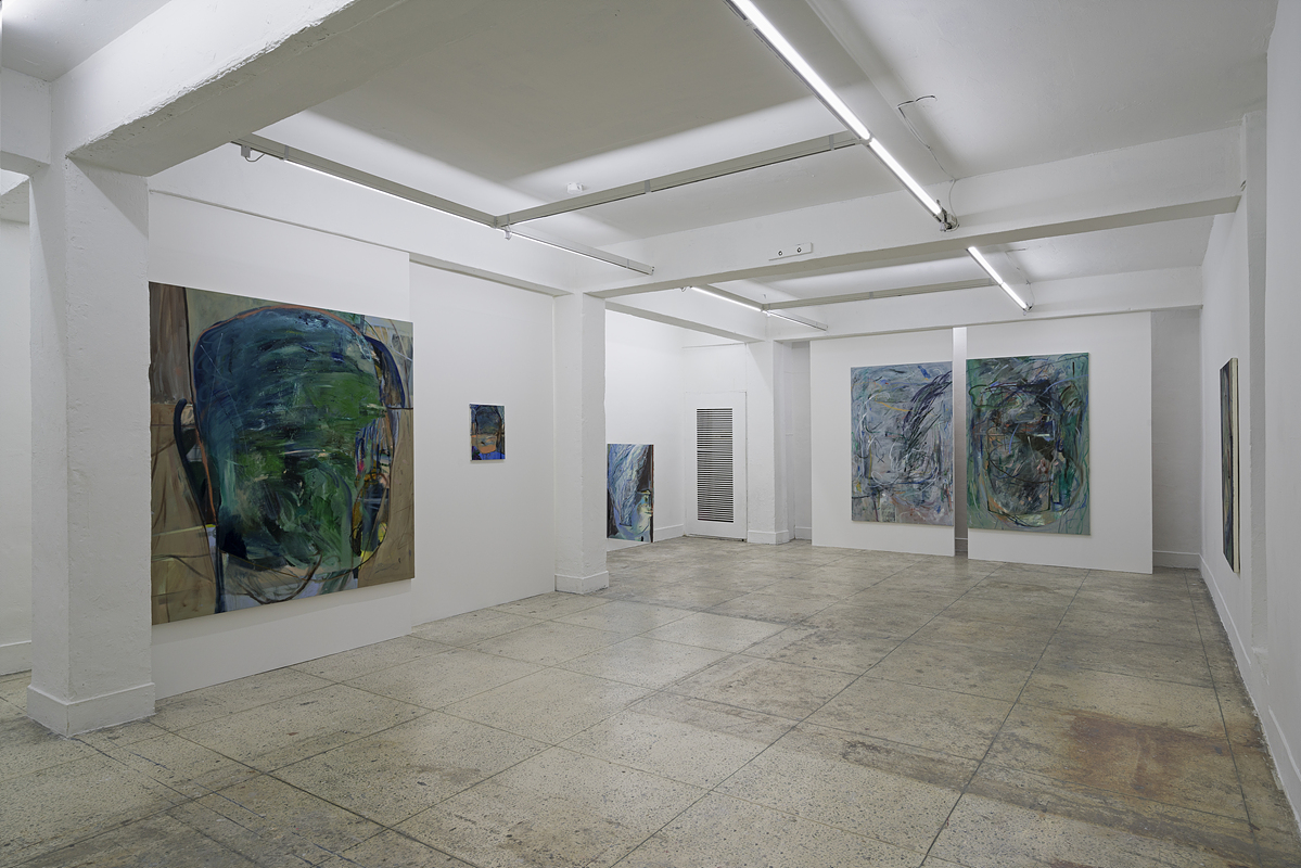나는 '도시'란 단어를 보면 하나로 떠오르는 그림이 없다. 대신 청각, 촉각 혹은 어떤 상태가 연상되는데 예를 들면 공사장이라는 장소가 가진 임시적 상황, 지하철역 통로에서 사람과 사람이 부딪힐 때 쾅! 하고 둘 사이의 공간에 균열이 가는 소리-이미지, 러닝머신 벨트의 무한반복, 강물의 비릿한 악취 등 출렁이듯 흘러가고 대기 중에 떠다니는 상태가 연상된다. 다시 말해, 내가 사는 공간에 대한 위치와 정의는 고정된 것이 아니라 계속 변화하는 비정형의 어떤 것이다. 이번 전시 『블루 바이널 커튼』에 출품한 「얼굴 – 풍경」연작(2019)은 「Trick Mirror」(2009)의 연장선에 있다. 그러나 최근 작업에서는 이전보다 더 유동적이고 가변적인 요소에 집중했으며, 공기의 떨림이나 미세한 소음 등 순간적인 감각에 의존하며 작업했다. 또한, 예전 작업에서 보이는 얼굴 형태를 인지할 수 있는 선이나 묘사 등을 제거하려 했는데, 얼굴의 직접적인 묘사나 정보를 제시하기 보다는 오늘 날을 사는 사람들이 느끼는 미묘한 불안을 여러 겹 찍어내듯 보여주려 했다.