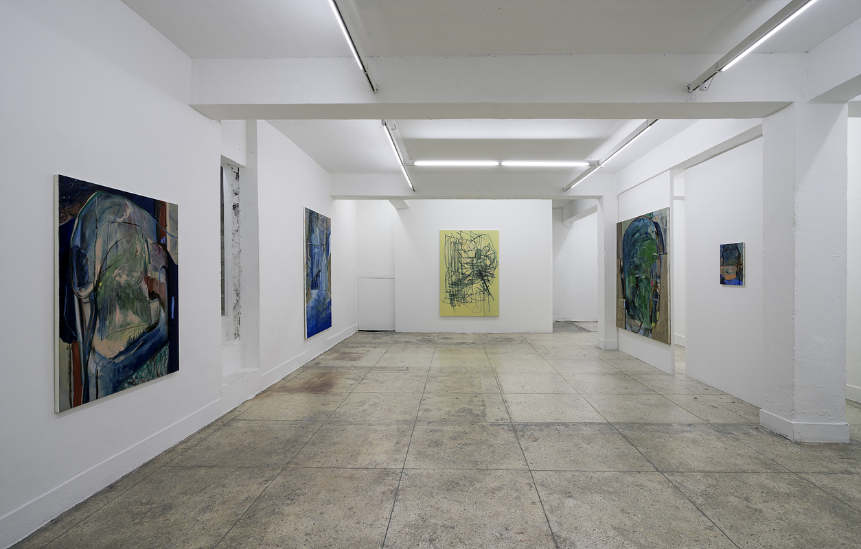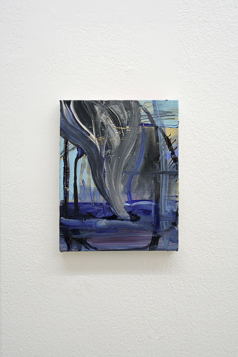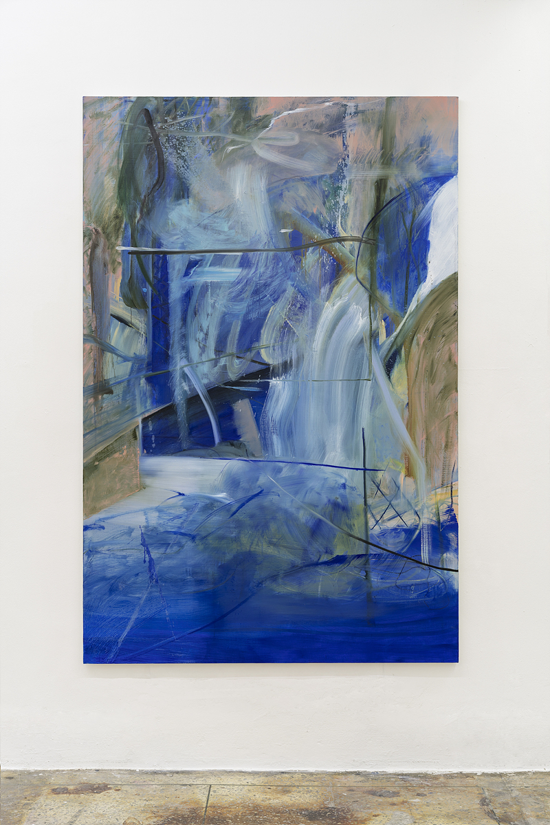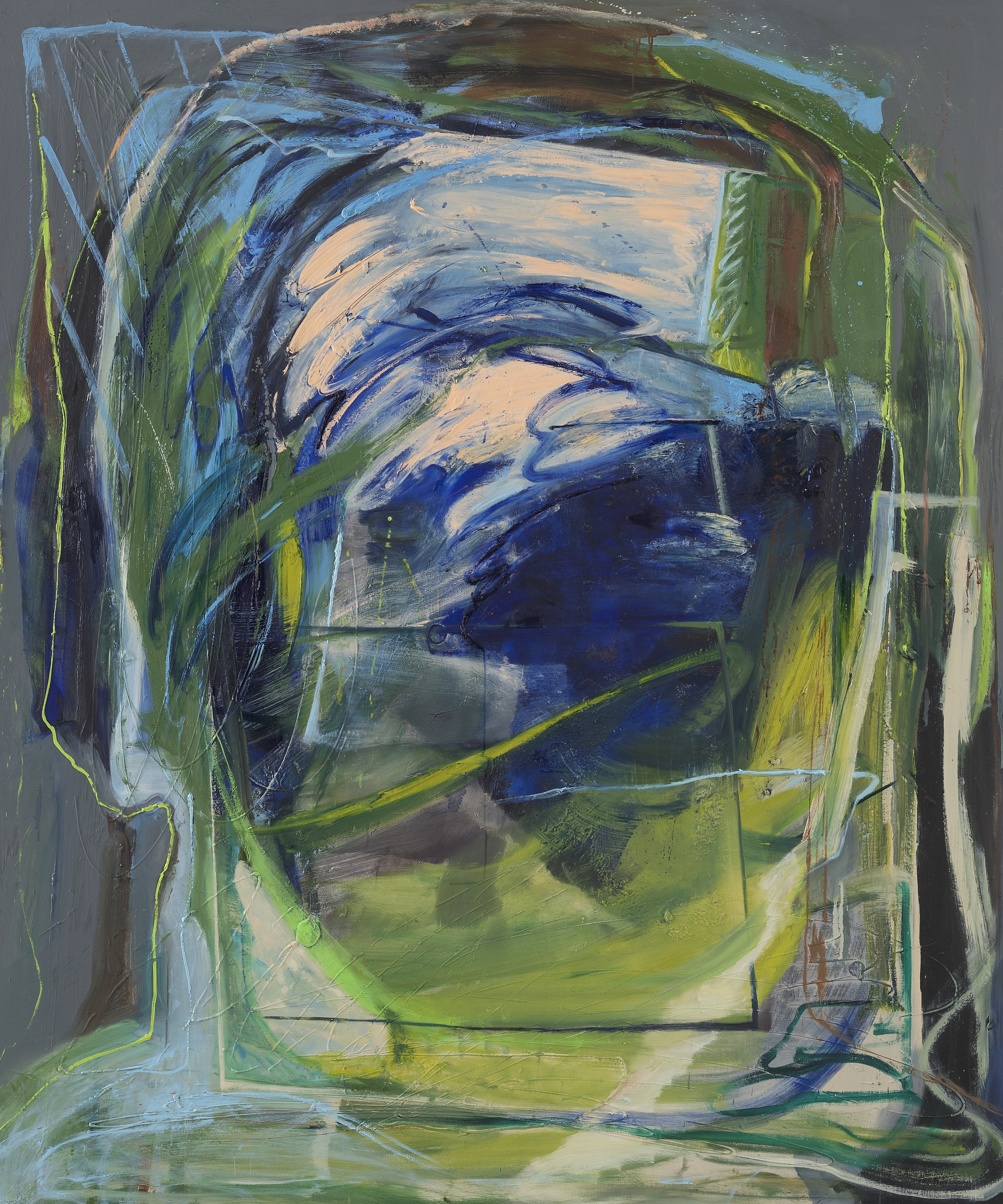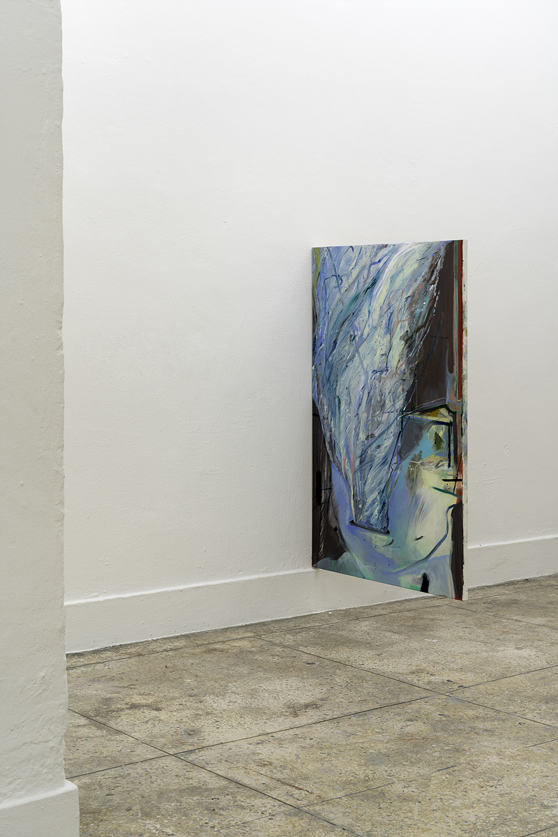 나는 '도시'란 단어를 보면 하나로 떠오르는 그림이 없다. 대신 청각, 촉각 혹은 어떤 상태가 연상되는데 예를 들면 공사장이라는 장소가 가진 임시적 상황, 지하철역 통로에서 사람과 사람이 부딪힐 때 쾅! 하고 둘 사이의 공간에 균열이 가는 소리-이미지, 러닝머신 벨트의 무한반복, 강물의 비릿한 악취 등 출렁이듯 흘러가고 대기 중에 떠다니는 상태가 연상된다. 다시 말해, 내가 사는 공간에 대한 위치와 정의는 고정된 것이 아니라 계속 변화하는 비정형의 어떤 것이다. 이번 전시 『블루 바이널 커튼』에 출품한 「얼굴 – 풍경」연작(2019)은 「Trick Mirror」(2009)의 연장선에 있다. 그러나 최근 작업에서는 이전보다 더 유동적이고 가변적인 요소에 집중했으며, 공기의 떨림이나 미세한 소음 등 순간적인 감각에 의존하며 작업했다. 또한, 예전 작업에서 보이는 얼굴 형태를 인지할 수 있는 선이나 묘사 등을 제거하려 했는데, 얼굴의 직접적인 묘사나 정보를 제시하기 보다는 오늘 날을 사는 사람들이 느끼는 미묘한 불안을 여러 겹 찍어내듯 보여주려 했다.