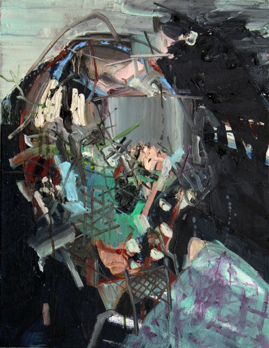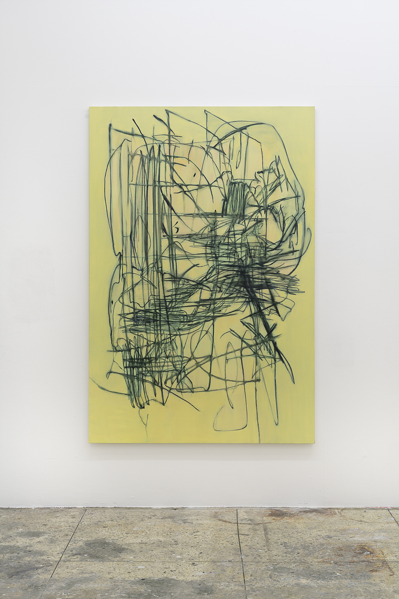 구지윤의 작업에서 충동과 불안의 심리는 익명인의 얼굴을 대상화하는 방법과 의미다. 그렇게 작가는 사실적인 형상을 걷어내고, 마치 구축과 파괴의 프로세스가 쉴 틈 없이 이뤄지는 복잡한 공사 현장처럼, 다양한 조형 요소들이 서로 뒤엉키고 생성, 소멸하기를 반복하는, 일종의 기형적이면서 추상적인 형태를 취한다. 또한 이것은 거대한 크기의